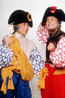 i just saw mark morris' "the hard nut", and his drosselmeier reminded me very much of adam ant... in general he had a very pirate-y look. i can't find a really good pic but if you go to http://markmorrisdancegroup.org/resources/photo_gallery/117 and click on the third or fifth pic in it shows him. i've never paid much attention to the nutcracker story but this makes me think that drosselmeier is in a way a peter pan-ish character. hmm. he also has a white streak in his hair... i can't figure out what that's referencing, though i think johnny depp as sweeney todd has one... anyway, it is really interesting how this whole look is coming back 'round again (though the hard nut is a few years old now.)